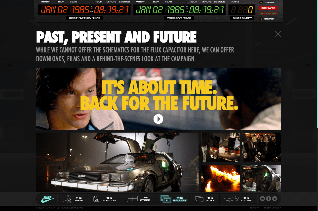 BACK FOR THE FUTURE / Nike leadership came to Wieden + Kennedy to help bring back the original cast and crew of the 1985 Film to raise awareness and fundraise for the Micheal J. Fox Foundation. Christopher Lloyd. And Robert Zemeckis. And Frank Marshall. And Bob Gale. And Tinker Hatfield. And KD. And SNL's Bill Hader. And the Nike Mag. And the DeLorean. And millions raised for Parkinson's research. And this was fun.